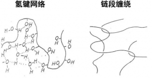 當(dāng)羥乙基纖維素增稠劑加入乳膠漆中,吸收大量水分,使其本身體積大幅度膨脹,減少了顏填料和乳膠粒子的自由活動空間;同時羥乙基纖維素分子鏈互相纏繞形成立體網(wǎng)絡(luò)結(jié)構(gòu),顏填料和乳膠粒子被包圍在網(wǎng)眼中間,不能自由流動。